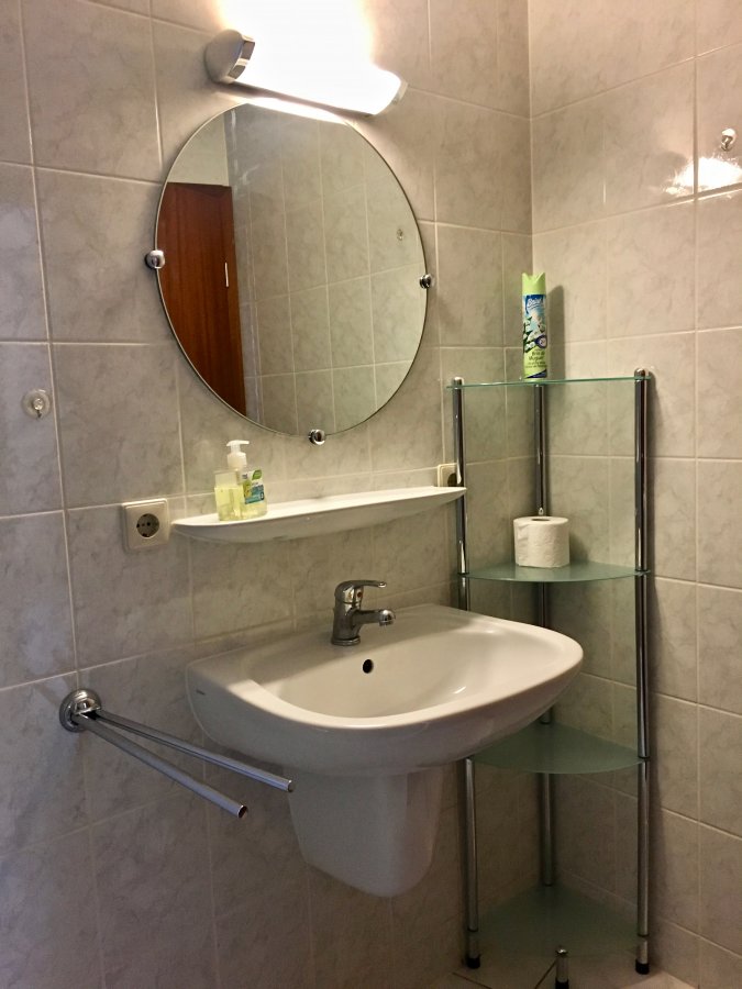 1 Salle de douche avec lavabo et WC